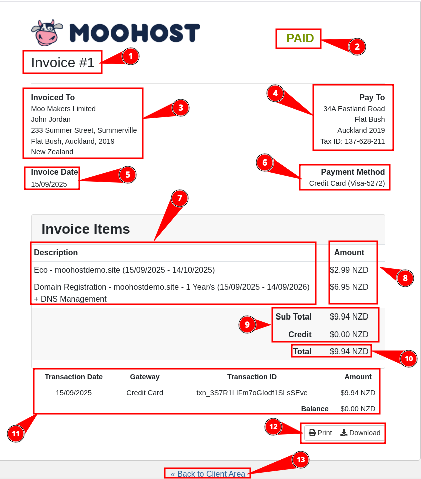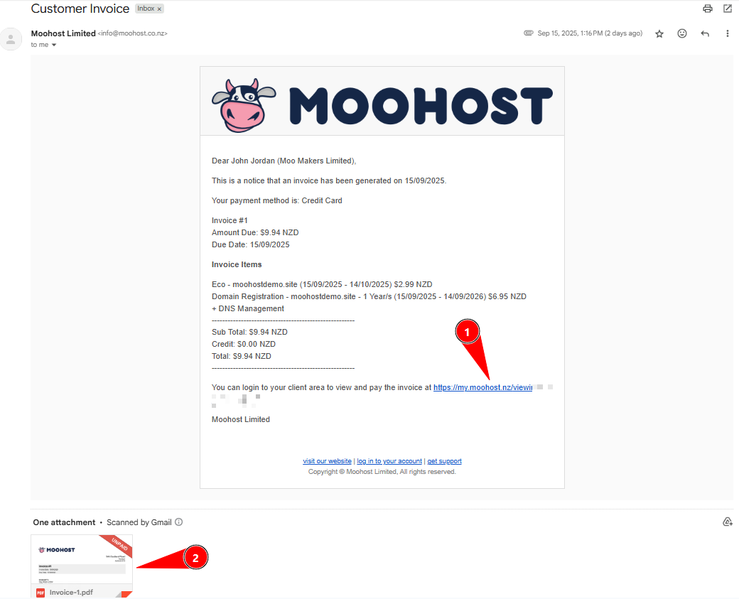 Your invoice will be sent to your registered email address. A copy of your invoice will also be available in your My Moohost account.