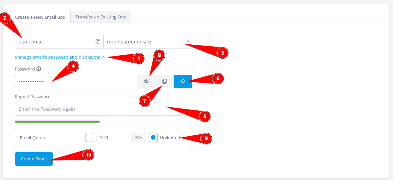 - Optional: Clicking on this will copy the password that you have entered or generated.