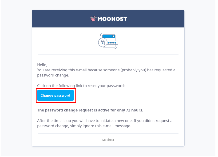 Click on the Change password button to continue. The following page will be displayed when the link is clicked: