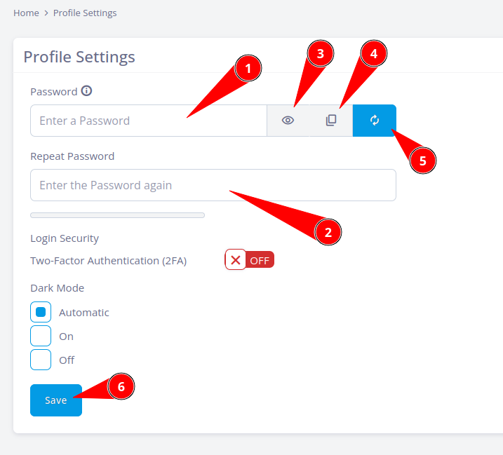 - Optional: Clicking this will copy your new password to your device's clipboard.